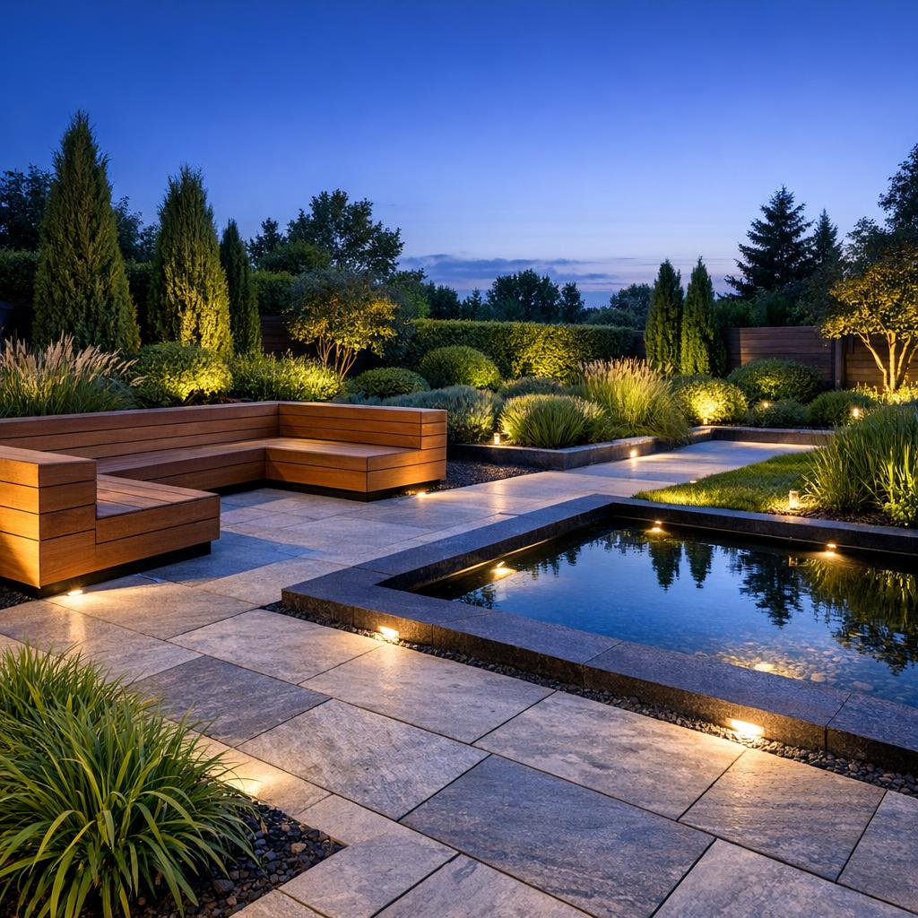 Auch die Beleuchtung spielt eine wichtige Rolle. Mit gezielten Lichtakzenten werden Wege und besondere Pflanzen in Szene gesetzt. So entsteht ein Garten, der auch in den Abendstunden seine Wirkung entfaltet und zum Verweilen einlädt.